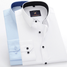 欧保罗男士衬衫白色长袖修身免烫春季中青年商务职业工装白衬衣
