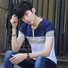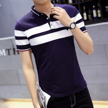 夏季新款男士短袖t恤韩版修身条纹男装体恤青年翻领半袖POLO衫潮