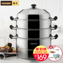 维艾不锈钢家用蒸锅不锈钢锅具2层3层加厚复底蒸笼电磁炉通用32cm