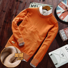 秋季纯棉男士长袖t恤加绒青年圆领毛衣男款打底针织衫潮体恤秋冬