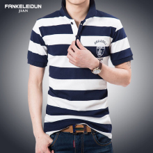 polo衫夏季男士短袖条纹t恤加肥加大码有翻领修身男装半截袖薄款