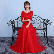 敬酒服2017新款红色长款一字肩时尚修身中袖新娘结婚宴会晚礼服春