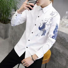 青年韩版休闲衬衫男士修身印花长袖衬衫春季时尚男装上衣潮流衣服