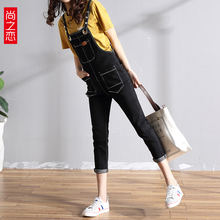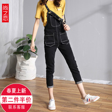 尚之恋牛仔背带裤女宽松九分裤2017春装新款韩版显瘦黑色连体裤潮