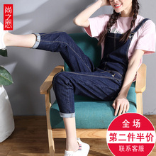 尚之恋牛仔背带裤女宽松吊带裤韩版学生九分裤春秋2017新款连体裤