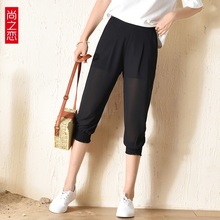 尚之恋雪纺休闲裤女夏季透视网纱哈伦裤薄款宽松防晒灯笼裤七分裤