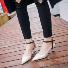 大叔家ocandy2017春季新品韩版尖头中空细跟中跟一字式扣带单鞋子