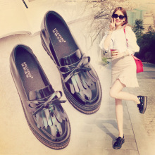 2017春季韩版新款流苏蝴蝶结单鞋女中口套脚低帮鞋中跟厚底松糕鞋