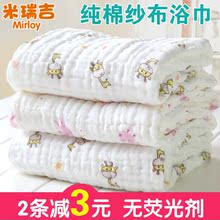 米瑞吉婴儿纱布浴巾6层宝宝纯棉浴巾新生儿超柔吸水浴巾盖被秋冬