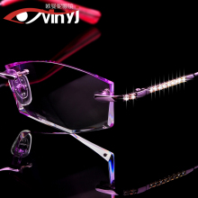近视眼镜女切边镶钻眼镜无框眼镜架配成品变色眼镜框平光切边老花