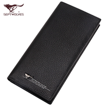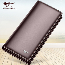 正品七匹狼钱包男长款真皮青年男士商务皮夹头层牛皮票夹日韩钱夹