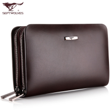 正品七匹狼 手包 男士商务手抓包休闲长款钱包真牛皮男包包手拿包
