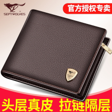 正品七匹狼钱包男士真皮短款加厚钱夹商务头层牛皮夹子横款青年潮