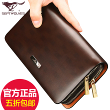 正品七匹狼男士手包男包手拿包牛皮手抓包大容量商务夹包双拉链潮