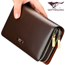 七匹狼男士钱包男长款拉链钱夹手包男真皮手拿包男牛皮手机男包潮