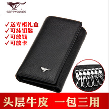 七匹狼钥匙包男真皮 男士牛皮汽车钥匙包 钥匙卡包女多功能钥匙扣