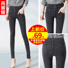 2015秋季新款高腰牛仔裤女士小脚裤修身显瘦小脚铅笔裤弹力长裤子