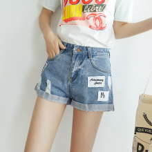 高腰牛仔短裤女夏宽松破洞阔腿a字短裤mm学生卷边补丁贴显瘦热裤