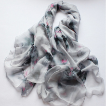 夏季丝巾女新款印花渐变围巾桑蚕丝丝巾春秋百搭披肩夏季超大纱巾