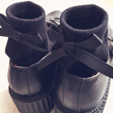 春夏全棉后跟蝴蝶结短袜纯色黑色白色森系韩国可爱日系中筒女袜子