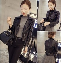 2016秋装新款宽松显瘦大码女装长袖棒球服短外套纯色PU皮衣女上衣