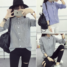 2017春装新款韩版学院风条纹修身显瘦百搭长袖衬衫潮流女上衣打底