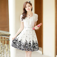 2017夏装新款韩版大码女装夏季中长裙子短袖碎花印花雪纺连衣裙女