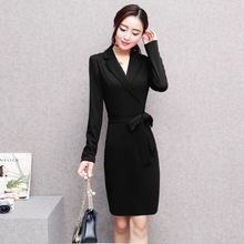 2017春装新款大码女装春秋季中裙子长袖修身系带打底针织连衣裙女
