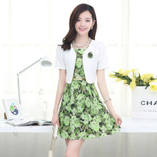 2017夏装新款韩版大码女装春夏季新品两件套短袖印花连衣裙套装裙