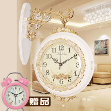 欧式双面挂钟客厅静音钟表现代简约田园创意两面挂表大气家用时钟