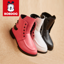 巴布豆家族童鞋儿童靴子女童2017秋冬新款马丁靴皮单靴男童短靴