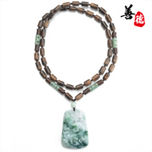 善德缅甸翡翠a货生肖龙吊坠玉佩 飘花色翡翠玉坠龙牌玉坠平安牌