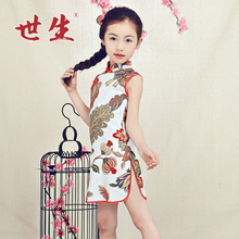 世生夏季新款无袖童装旗袍裙女童棉麻连衣裙子中式盘扣唐装礼服装
