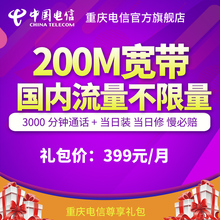 重庆电信十全十美套餐200M宽带流量无限量3000分钟通话(方)