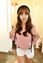 2017春夏秋新款韩版胖mm宽松长袖圆领红色条纹女胖妹妹长袖t恤 潮