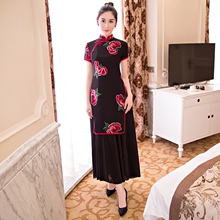 改良旗袍女2017新款旗袍日常短袖长款性感复古淑女旗袍礼服连衣裙