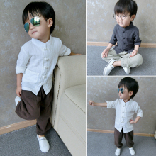 春款儿童棉麻复古中式衬衣宝宝春装男童盘扣衬衫小童女童汉服童装