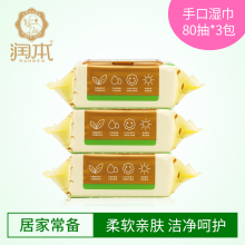 润本湿巾 带盖便携植物木糖醇婴儿湿巾纸3包*80片