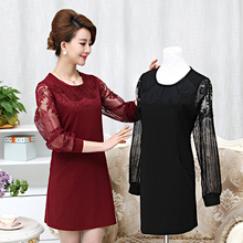 妈妈装2016春装新款时尚雪纺蕾丝长袖修身连衣裙 中老年春夏裙子