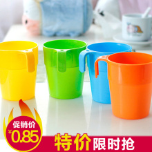 糖果色塑料水杯 彩色杯子塑料杯刷牙漱口杯 带耳挂手柄特价