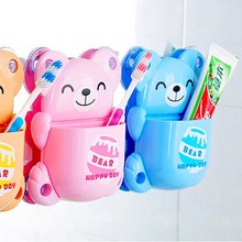韩国创意卡通小熊情侣牙膏牙刷架 浴室卫生间强力儿童牙刷吸盘架