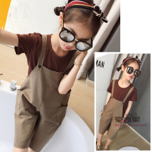 米米果家女童2017夏款宽松五分牛仔裤子挂饰背带裤阔腿裤儿童裤子