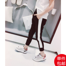 米米果家中大女童春夏2017新款条纹校服裤运动裤百搭休闲裤长裤子