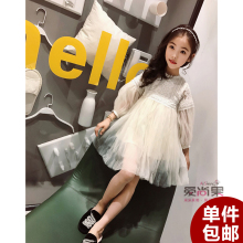 米米果女童连衣裙长袖2017春季韩版儿童蕾丝裙子中大童公主裙纱裙