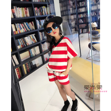 童装夏装中大女童圆领条纹T恤2017蝙蝠短袖宽松上衣儿童体恤潮衫