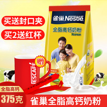 买2送红杯 雀巢全脂奶粉375克成人学生早餐营养奶粉包邮 送封口夹
