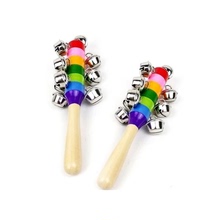 缤纷七彩铃铛 木制玩具乐器 10个响铃 打击乐器 串铃 益智摇铃
