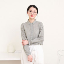 三木社 春秋新款双层沙棉纯色翻领长袖衬衫女打底衫小清新衬衣