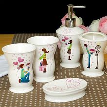 陶瓷 卫浴五件套 西式浴室用品套件卫浴用品洗漱套装2漱口杯 新婚