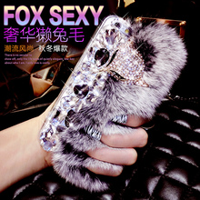 苹果6手机壳硅胶日韩女款奢华钻狐狸头獭兔毛iphone6splus手机壳